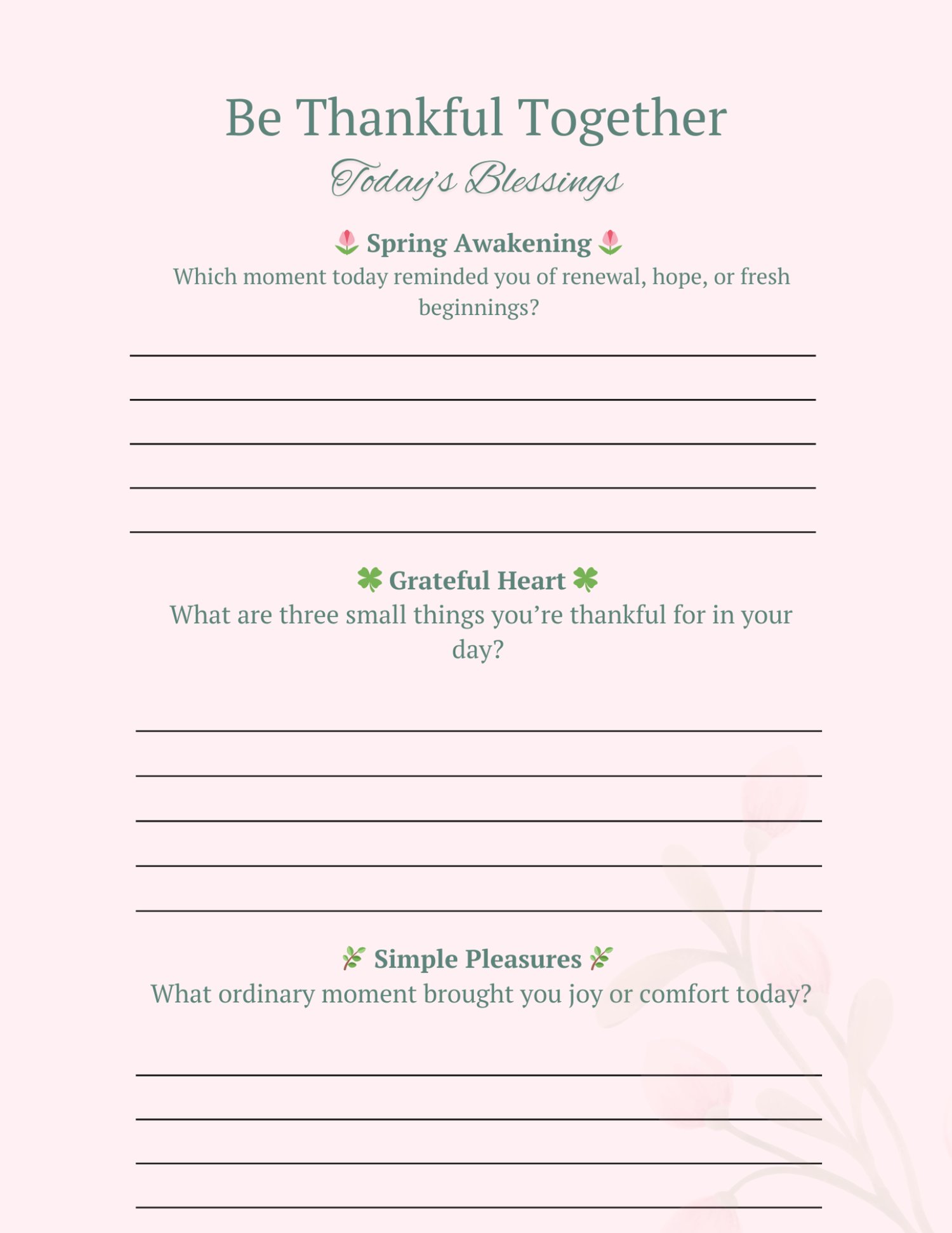 - Gentle reflection prompts that encourage gratitude without pressure