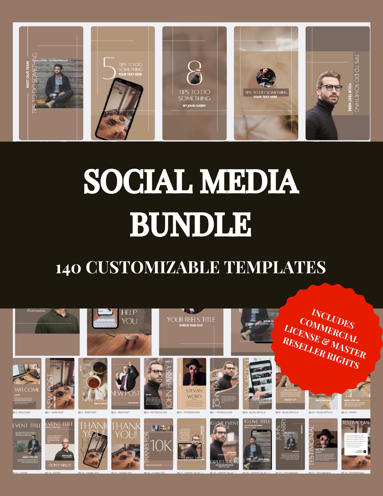 Social Media Beginner Bundle: 140 Customizable Templates