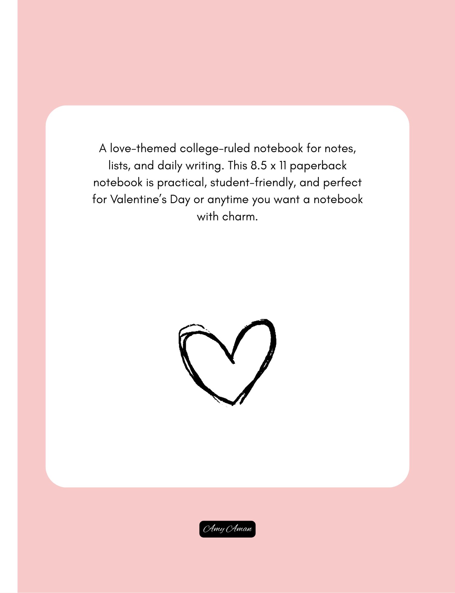 Sweet Hearts is a college-ruled notebook for everyday writing, note-taking, and organization. Its clean interior and heart-inspired cover make it both functional and gift-worthy. Ideal for school, work, or as a Valentine’s Day present — or a love-themed notebook for year-round use.